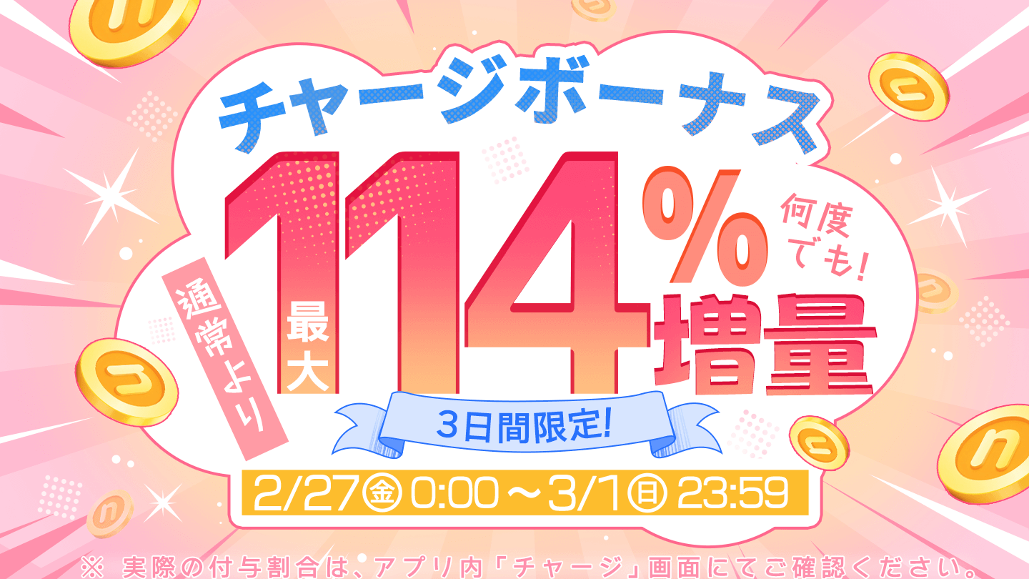 【三日間限定】チャージボーナス増量中!