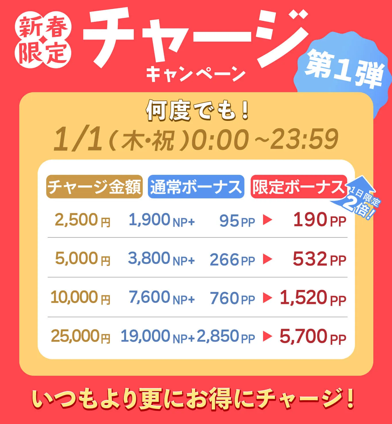 æéäžã察象éé¡ä»¥äžã®NPãã£ãŒãžãè¡ããšãâšæ°æ¥éå®ã§ããã¬ãŒã³ããã€ã³ãïŒPPïŒãéåžžã®2åã«ãªããŸãã