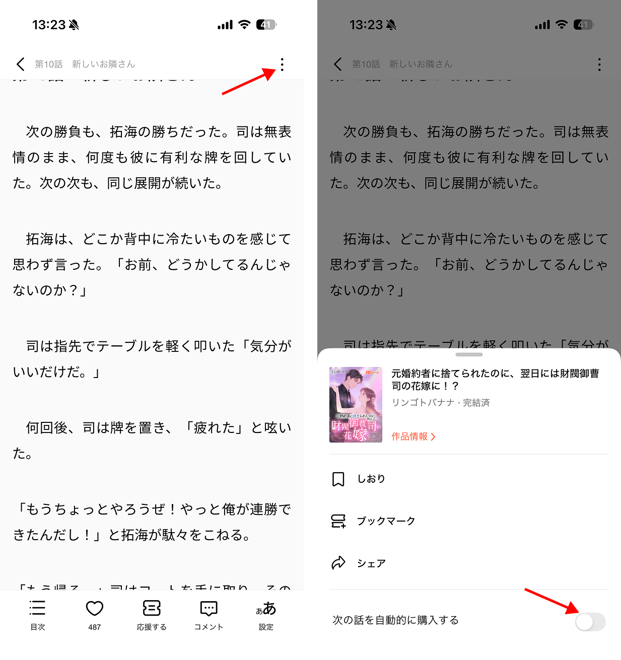 ・画面下部の 「次の話を自動的に購入する」 をオフにする