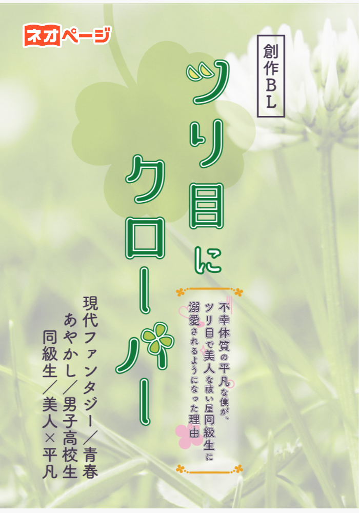 不幸体質の平凡な僕が、ツリ目で美人な祓い屋同級生に溺愛されるようになった理由 あらすじ) ツリ目美人の祓い屋同級生と、ほぼ毎日キスをすることになりました。 名前負けする不幸体質がコンプレックスな高校生・黛 四葉(まゆずみ よつば)は、ひょんなことから、猫みたいなツリ目で美人な『祓い屋』の同級生・鳴崎 菖(なるさき あやめ)とほぼ毎日キスをする契約を結ぶ。 実は四葉の不幸体質の原因は『霊力過剰症』という大量の霊力を持っているせいで、霊力が常に足りない『霊力欠乏症』を患う菖に『キス』という形で提供すると収まるのだとか。 この契約は、菖が悪霊を退治に必要な霊力を補うために使っていた『神域』が直るまでの期間限定で、契約終了後には霊力を隠してくれる『霊具』をもらえるという約束。 「俺のことを好きになったりするなよ?」と釘を刺されながら、四葉は不幸体質を治すため、放課後ほぼ毎日、菖の仕事に『非常食』としてついていき『キス(霊力)』を提供することになるのだが──。 期間限定の凸凹コンビによる、アンラッキーな青春BL。 ※キスシーンを含む話にはタイトルに「*」をつけています。 ※カクヨム、小説家になろう、Pixivにも掲載しています。 2025.08.18 全体を校正しました。 2025.09.17 追加短編を公開しました。