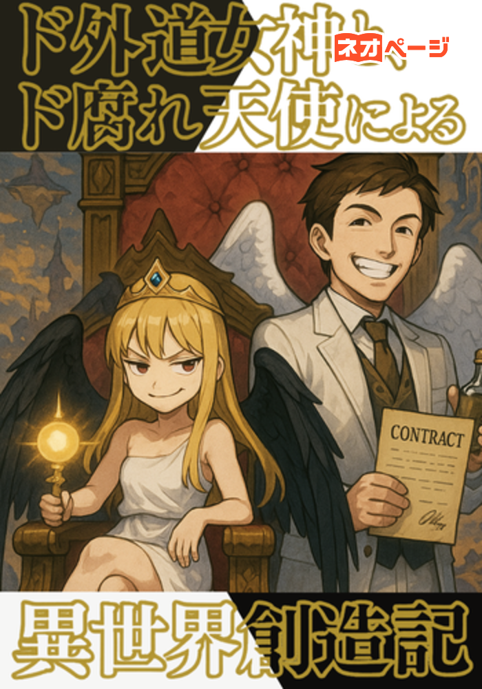 前世で詐欺師として生きた男は、死後、神によって異世界へと召喚され、最高神の孫娘である女神の世界創造を補佐する「天使」に任命される。 しかし、女神「エルセア」は、見た目は幼い少女ながら、力は絶大で性格は傍若無人な「ド外道女神」だった。 この物語は、神の気まぐれと人間の欲望、そして適当すぎる創造によって、予測不能な発展を遂げる異世界「エルノヴァ」を舞台に、二人の衝突と協力(?)を繰り返しながら展開される、壮大なようでいて非常にしょうもない世界創世記である……。