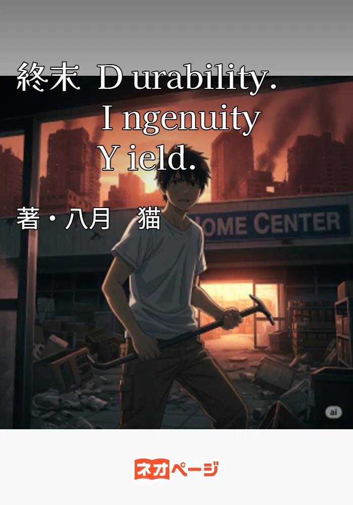 未曾有の大崩壊が全てを奪い去った世界。 残されたのは瓦礫と異形の影、そしてホームセンターだけだった――。 深夜のアルバイト中、突如として世界を襲った白光。 ホームセンター「生活館」で目を覚ました天野創真(あまの そうま)が見たのは、文明が崩壊し、異質な脅威が跋扈する変わり果てた世界だった。 電気も水も途絶え、食料も僅か。 絶望的な状況の中、創真は店内に残された膨大な商品こそが、生き残るための唯一の希望だと気づく。 工具、建材、園芸用品――かつて人々の生活を支えた品々は、今や過酷な終末世界を生き抜くための武器となり、糧となる。 やがて創真は同じように生き残った数名の生存者たちと出会い、崩壊したホームセンターを最後の砦として共に生きることを決意する。 元自衛官の佐々木徹(ささき とおる)、薬学を学ぶ白石恵(しらいし めぐみ)、そして兄妹の佐藤悠真(さとう ゆうま)と佐藤花(さとう はな)。そして、崩壊の際に店内で行方不明となった大学生の遠野結衣(とおの ゆい)もまた、過酷な運命に翻弄されていた。 彼らは限られた物資を分け合い、知恵を絞り、力を合わせる。 しかし、外の世界の脅威は想像を絶するものだった。 飢えた変異種、物資を奪い合う荒くれ者たち、そして未解明な大崩壊の謎。 容赦なく襲い来る困難の中で、彼らの命はまるでホームセンターの備品のように次々と失われていく。 さらに、この異変の背後には、謎めいた組織の影が忍び寄っていた。ホームセンターの異常事態を察知し、特殊な装備で活動する「黒服の二人組」。 彼らの登場は、この終末世界が単なる災害ではなく、何らかの意図を持った「計画」の一部である可能性を示唆する。彼らは敵か、味方か、あるいは新たな脅威となるのか――。 それでも、彼らは抗う。 耐久性(Durability)のある物資を駆使し、創意工夫(Ingenuity)を武器に、わずかな希望という収穫(Yield)を信じて。 これは、絶望の淵で、ホームセンターの商品とDIY精神を頼りに生き抜く人々の過酷で壮絶なサバイバル物語。 彼らは明日なき世界で何を見出すのか――。