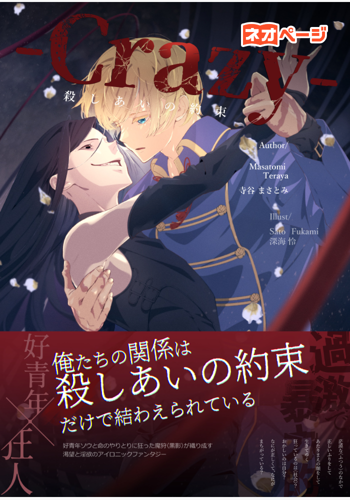 「キサマはワタシと殺しあう。約束だ」 *** 好青年ソウは魔種討伐のエキスパートである魔狩として生計を立て、引きこもりの弟と暮らしていた。 ある日、大規模討伐作戦に召集されたソウは、任務中、不慮の事故にまきこまれ、ランクSの魔狩〈黒影〉と共に見知らぬ大陸に転移してしまう! どうしても生きて帰りたいソウは、黒影に協力をあおぐが、代わりに提示されたのは〈殺しあうこと〉で――?! 命のやり取りに狂った孤高の魔狩〈黒影〉と 善良であることにこだわる青年ソウの、渇望と淫欲のアイロニックファンタジー。 ―――――――――――――――――――― ※過激描写(性的、暴力、暴言など)がございますが、あくまでもフィクションとしてお楽しみください。 暴力行為や暴言、性的暴行を示唆するものではございません。 2022/10/26 楽曲『end roll』公開 https://youtu.be/C8PUCUj-4EA
